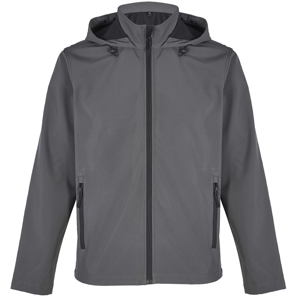 Куртка софтшелл с капюшоном мужская Race Men, темно-серая купить оптом и в розницу с нанесением логотипа в Санкт-Петербурге