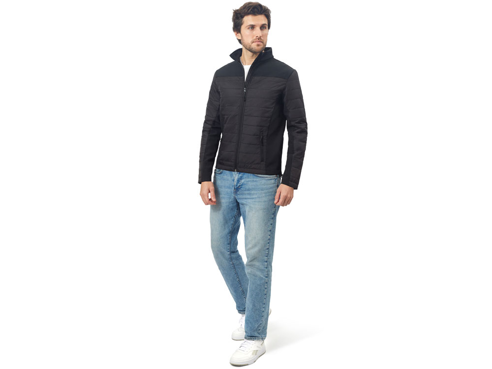 Вдохновленная динамичным миром автогонок, эта куртка сочетает в себе брутальную эстетику гонок с передовыми технологиями материалов. Идеальный выбор для промоактивностей, спортивных брендов или подарка тем, кто ценит стиль и функциональность. - гибридная конструкция из 2 видов материалов – софтшелл гарантирует ветронепроницаемость и легкость, а стеганные вставки добавляют утепления. - центральная молния в тон, верхний край продублирован ветрозащитным клапаном - боковые карманы на молниях с прорезиненными бегунками