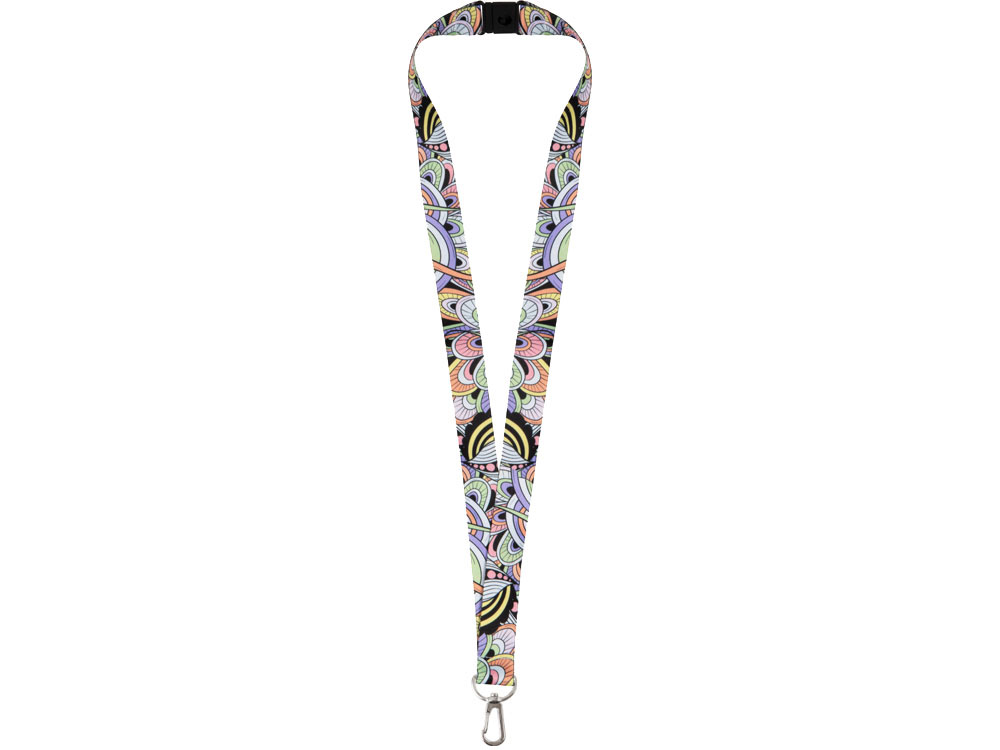 Ланъярд 2 см под сублимацию с карабином и замком обрыва, серебристый