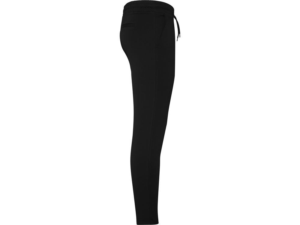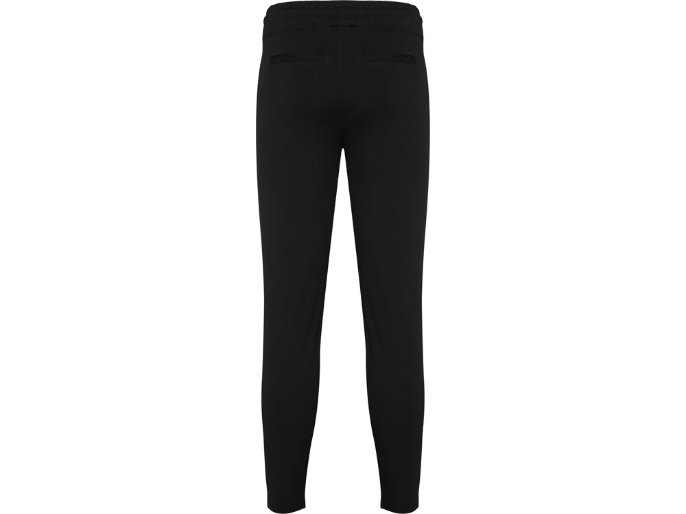 Женские брюки из эластичной ткани. · Эластичный пояс на кулиске сзади. · Складки спереди. · Два передних кармана. · Два задних кармана на пуговицах.
