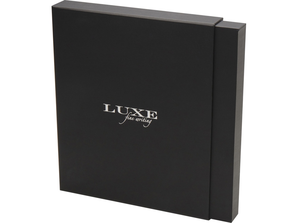 Legato — это элегантное сочетание блокнота формата А5 и ручки-роллера. Ручка имеет верхний корпус из переработанной латуни с золотым хромированием, нижний корпус с черно-коричневым напылением, металлические хромированные аксессуары из золота и логотип LUXE на среднем кольце. Цвет чернил: черный. Длина непрерывной линии: 400 метров. Размер пера: 0,7 мм. В блокноте 80 листов разлинованной бумаги плотностью 80 г/м², обложка из переработанного пластика, эластичная застежка, закладка-лента и карман-гармошка. Металлический аксессуар из хромированного золота на эластичной застежке. Поставляется в подарочной коробке из переработанного картона. FSC certified paper, Recycled brass. #?0:>2:0: FSC Mix Credit P5.1 CU-COC-877277. FSC Mix Credit P7.1 CU-COC-877277.