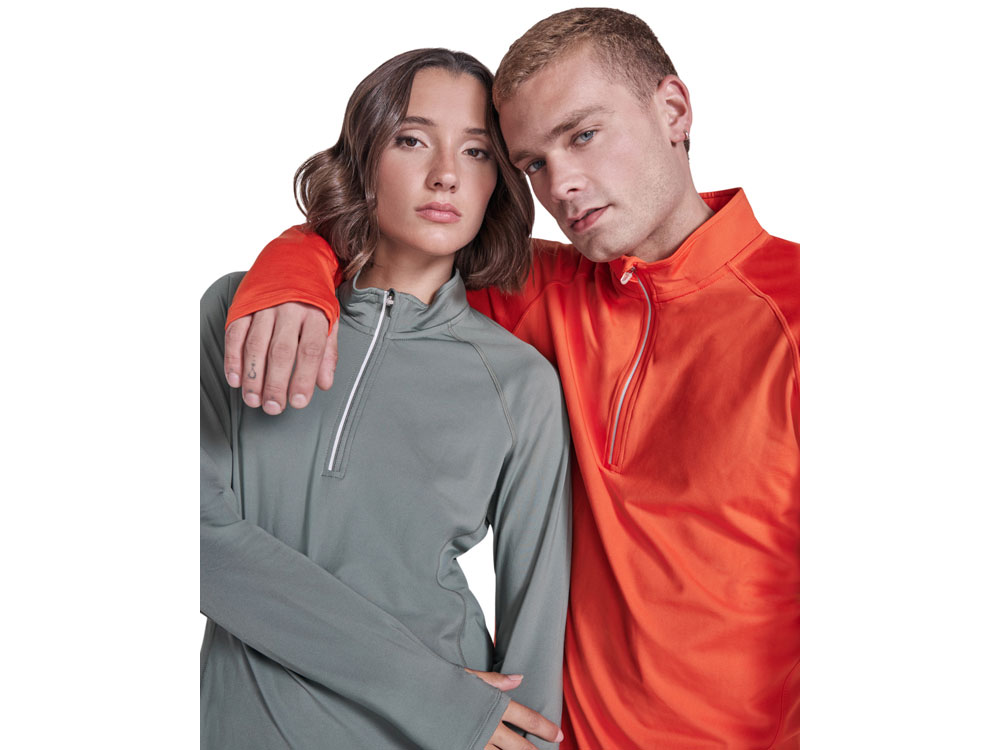 Лонгслив с рукавом реглан из технологического плотна, ворот на молнии со светоотражающей деталью. Усиленные швы. Манжеты с отверстием для большого пальца. Светоотражающая деталь на спинке. Низ спинки длиннее переда. Изнанка с теплым начесом.