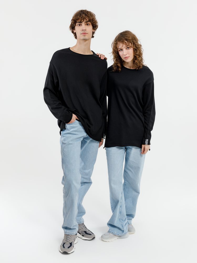 Лонгслив унисекс Siluetti Fuori, черный купить оптом и в розницу с нанесением логотипа в Санкт-Петербурге