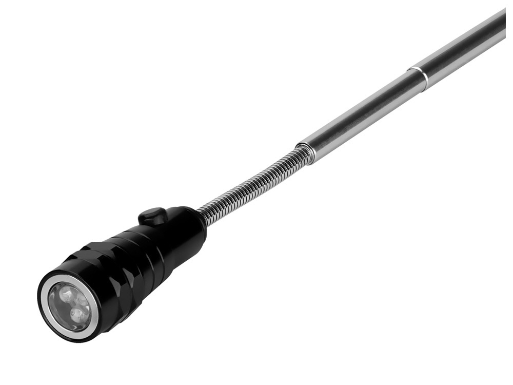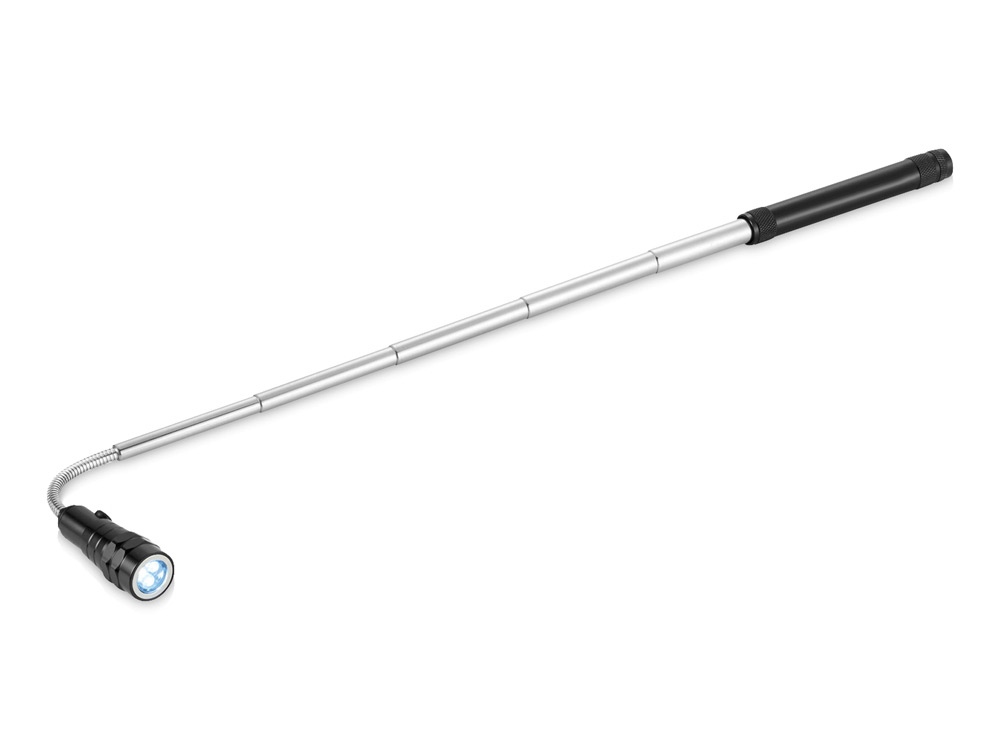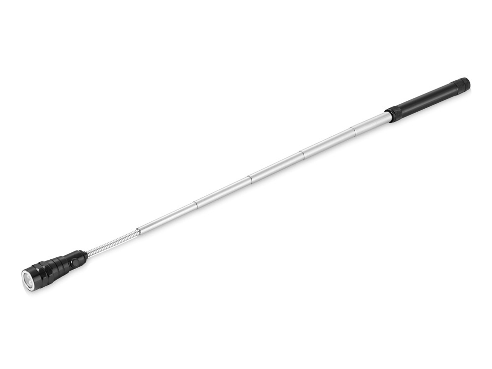 Магнитный телескопический фонарь. Удобный инструмент на телескопической ручке. Можно легко найти металлические маленькие предметы даже в темноте. В развернутом состоянии длина фонаря достигает максимально 57 см. Работает около 4-5 часов, в комплекте 4 батарейки ЛР44.