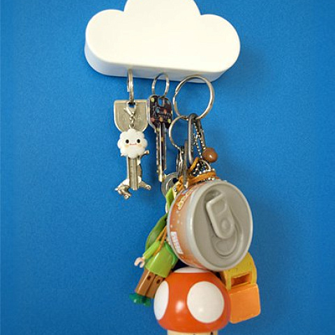Ключевая вода теперь не только в родниках, но и в облаках – вот такой «дождь» из ключей проливается из этого облака-держателя ключей. Здесь нет никаких крючков, на которые можно было бы повесить ключи – они держатся на мощном магните, который спрятан внутри белого корпуса этой оригинальной ключницы. Она обязательно принесет в ваш дом хорошую погоду, которая, как известно, главней всего.