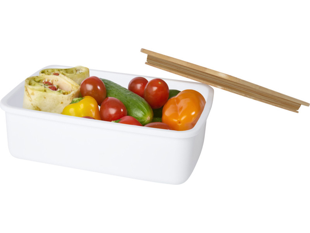 Пищевой контейнер Mangi изготовлен из переработанного пластика и имеет емкость 750 мл. Он оснащен бамбуковой крышкой и эластичной лентой, которая удерживает крышку на месте, гарантируя, что содержимое останется свежим. GRS certified recycled plastic, FSC certified bamboo.