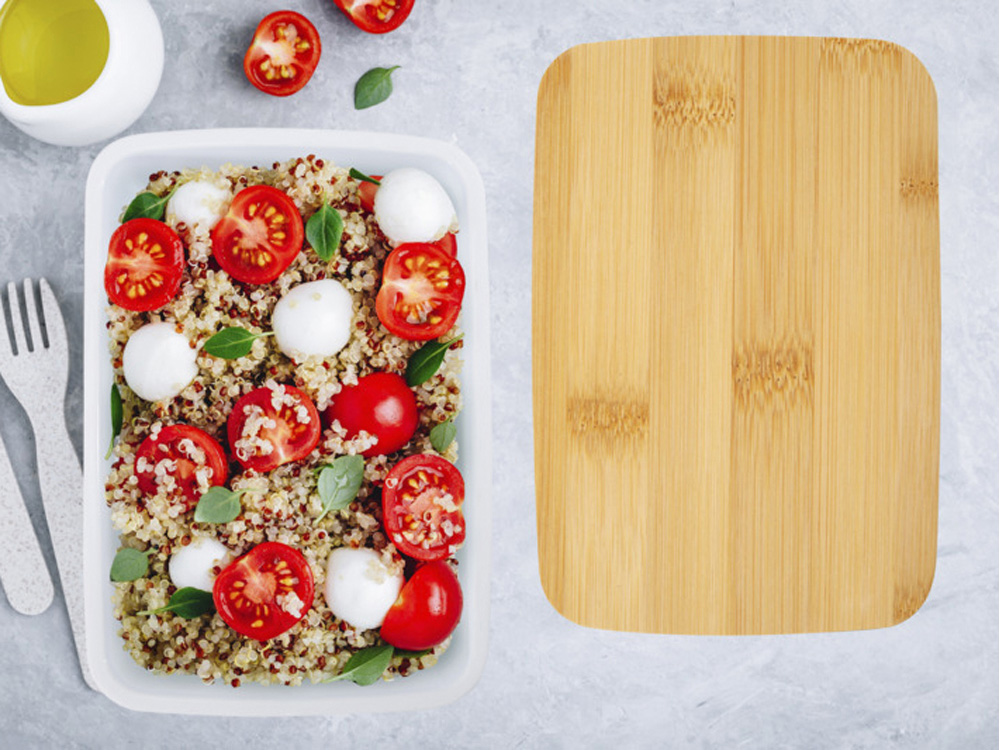 Пищевой контейнер Mangi изготовлен из переработанного пластика и имеет емкость 500 мл. Он оснащен бамбуковой крышкой и эластичной лентой, которая удерживает крышку на месте, гарантируя, что содержимое останется свежим. GRS certified recycled plastic, FSC certified bamboo.