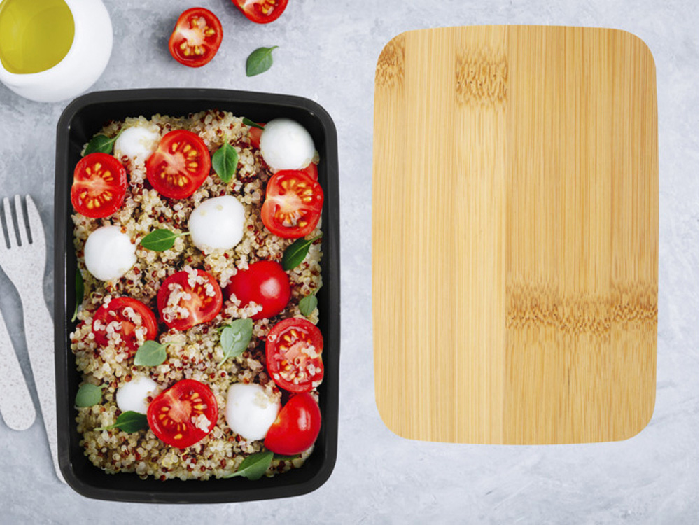 Пищевой контейнер Mangi изготовлен из переработанного пластика и имеет емкость 500 мл. Он оснащен бамбуковой крышкой и эластичной лентой, которая удерживает крышку на месте, гарантируя, что содержимое останется свежим. GRS certified recycled plastic, FSC certified bamboo.