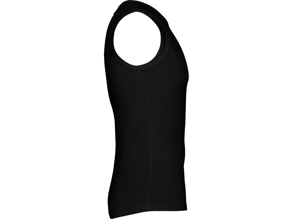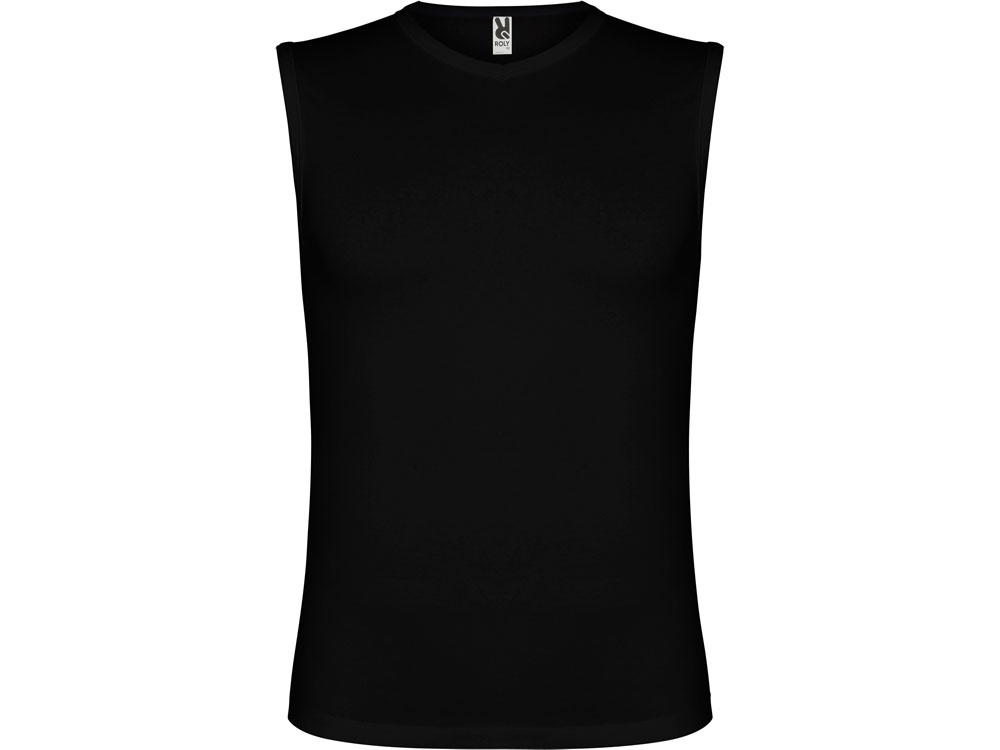 Мужская майка узкого силуэта с V-образным вырезом горловины. Отделка рибом по горловине и пройме.