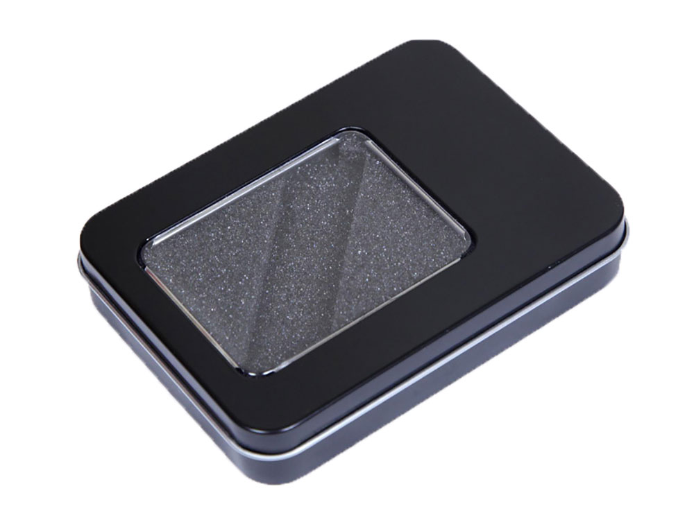 Металлическая коробочка G04 черного цвета с прозрачным окошком
