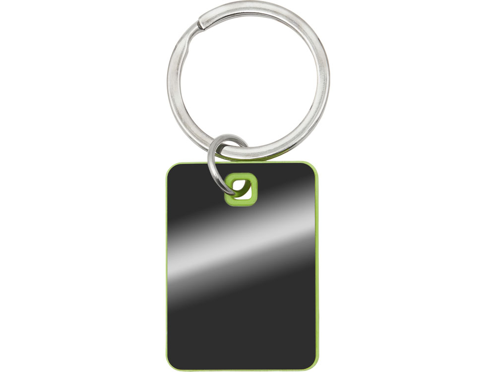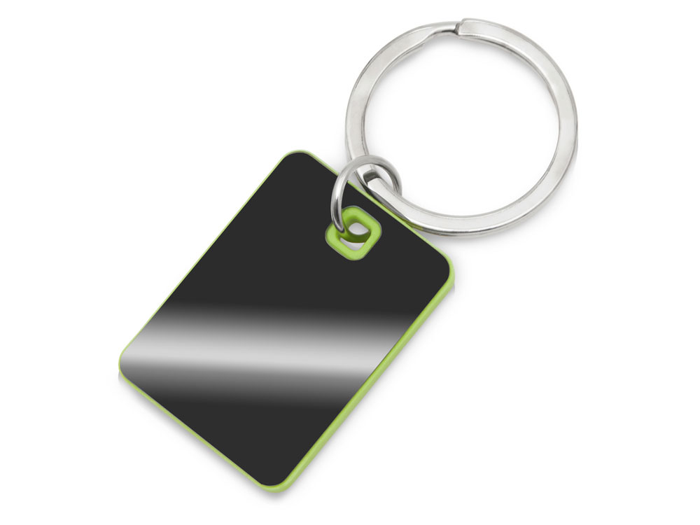 Металлический брелок с пластиковой цветной вставкой SteelPop Rct, серебристый с зеленым яблоком купить оптом и в розницу с нанесением логотипа в Санкт-Петербурге