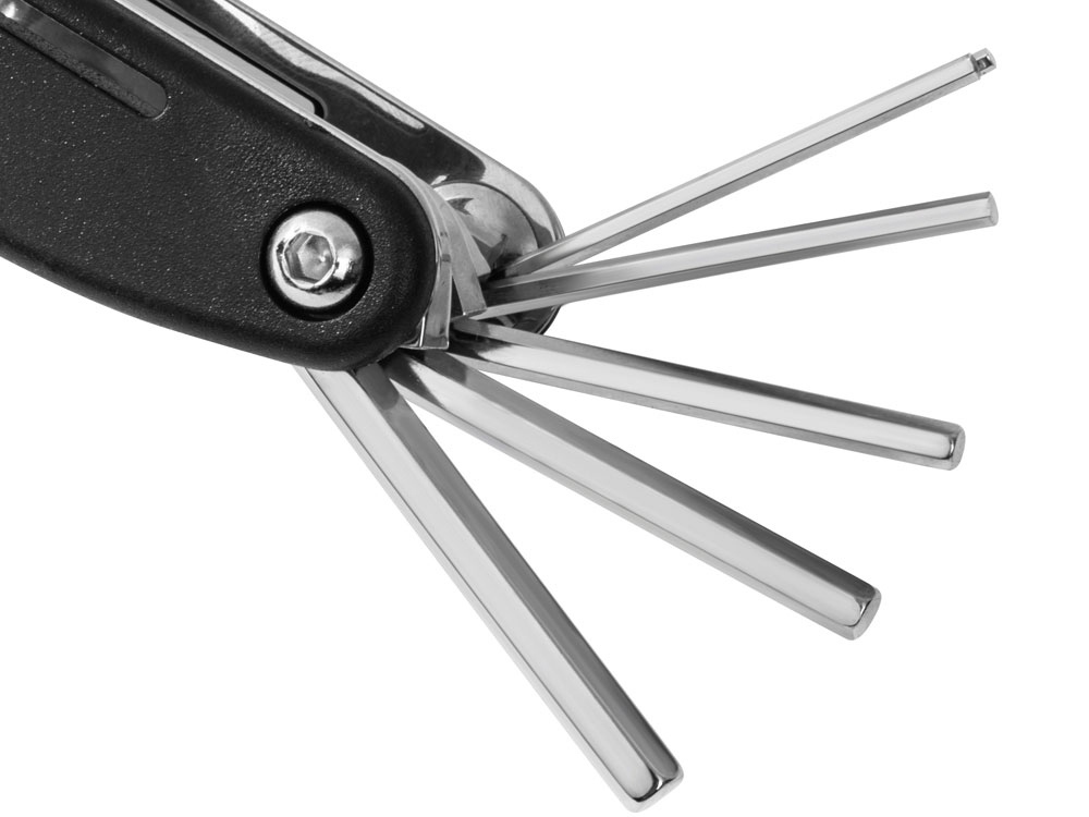 Многофункциональный инструмент от Roq сочетает в себе целых 16 функций: 6 шестигранных ключей (№ 2, № 2,5, № 3, № 4, № 5, № 6), 4 ключа (8 мм, 10 мм, 15 мм, 14GE), адаптер, крестообразную отвертку, шлицевую отвертку и 3 насадки (№ 8, № 9, № 10). - наиболее популярные ключи и отвертки в одном приспособлении - инструменты выполнены из нержавеющей стали - боковые накладки из пластика брендируются с обеих сторон - удобно ложится в руку