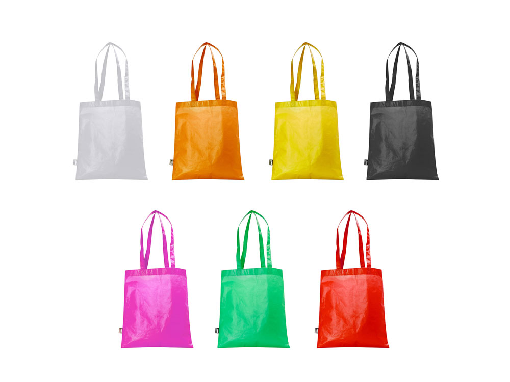Многоразовая сумка с матовой ламинированной отделкой. Изготовлена из прочного RPET с усиленными ручками.