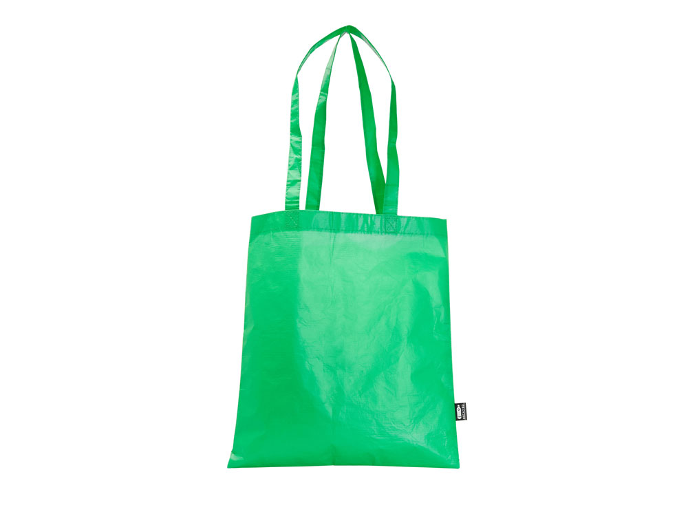 Многоразовая сумка с матовой ламинированной отделкой. Изготовлена из прочного RPET с усиленными ручками.