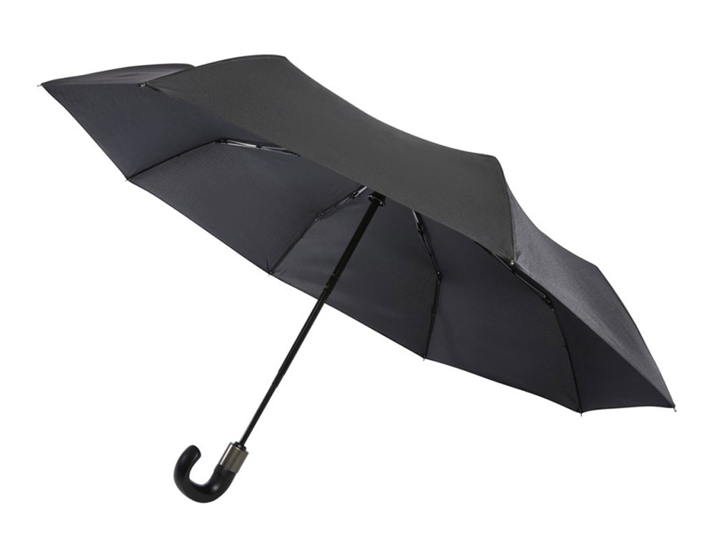 Автоматически открывающийся и закрывающийся складной зонт с куполом из эпонж полиэстера. Прочный металлический стержень, высококачественная рама со спицами из стекловолокна обеспечивают максимальную гибкость в ветреную погоду. Поставляется с чехлом и может легко поместиться в сумку или рюкзак для удобного ношения. Изогнутая ручка с мягким покрытием Soft Touch с деталями из матовой нержавеющей стали и наконечниками с черным никелевым покрытием. Тканые ярлыки с фирменными деталями Luxe на куполе, чехле и застегивающемся ремешке. Большая зона для декорирования на каждой панели купола. . Полиэстер Эпонж.