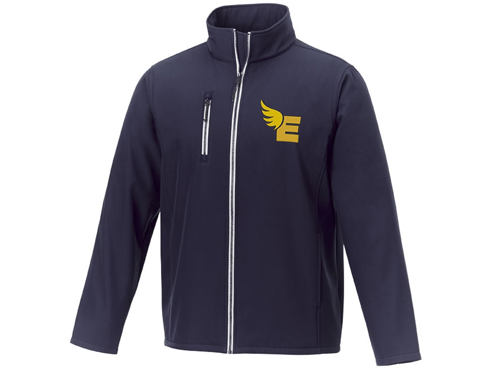 Мужская куртка софтшелл Orion. Отрезной-отрывной ярлык для комфорта. Нагрудный карман на молнии. Карманы. Внутренняя планка. Петелька-вешалка. Механическая стрейч-ткань из 100 % полиэстера с переплетением микрофлиса со 100 % полиэстером. 250 г/м².