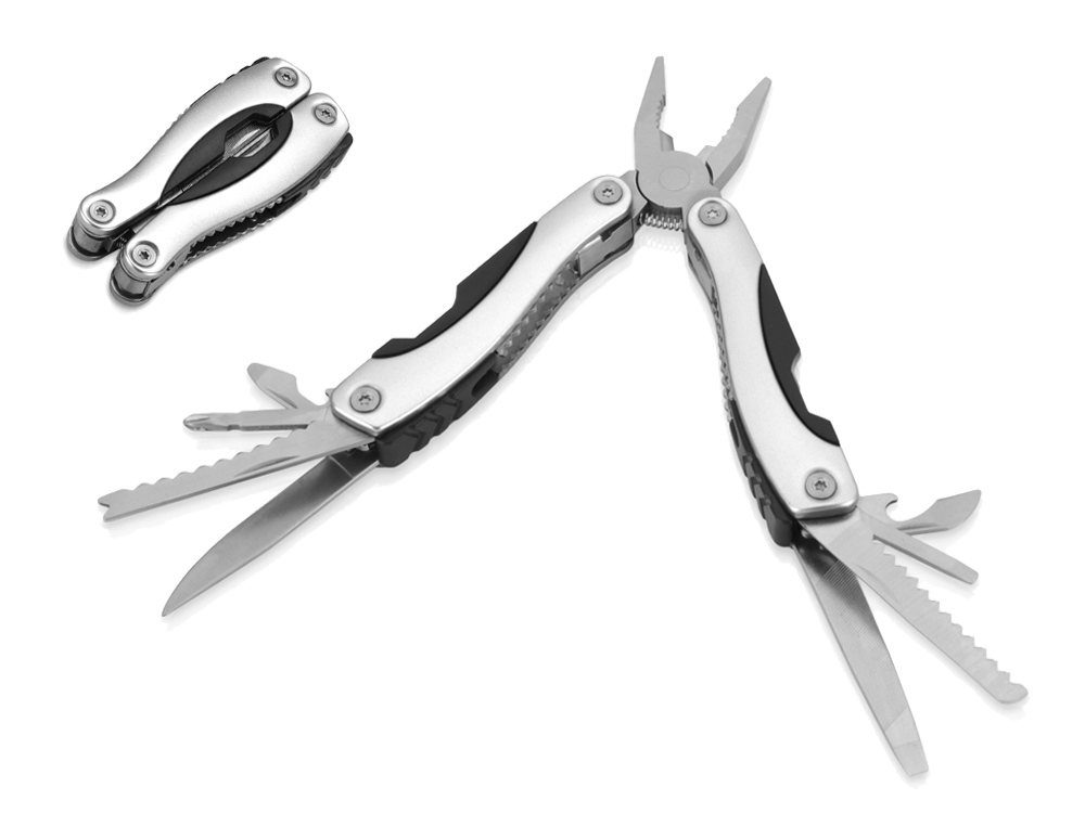 Настоящая находка для всех хозяйственных мужчин. Мультиинструмент всегда будет под рукой, так как его можно носить на поясе. Супер-пассатижи в чехле не так просты, как кажутся на первый взгляд! Они скрывают в себе целый арсенал нужных инструментов! - плоскогубцы - открывалка для бутылок - крестовая отвертка - нож-серрейтор для рыбы - нож универсальный - открывалка для банок - плоская отвертка 2 шт - пила - напильник