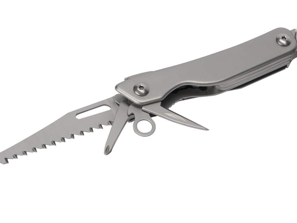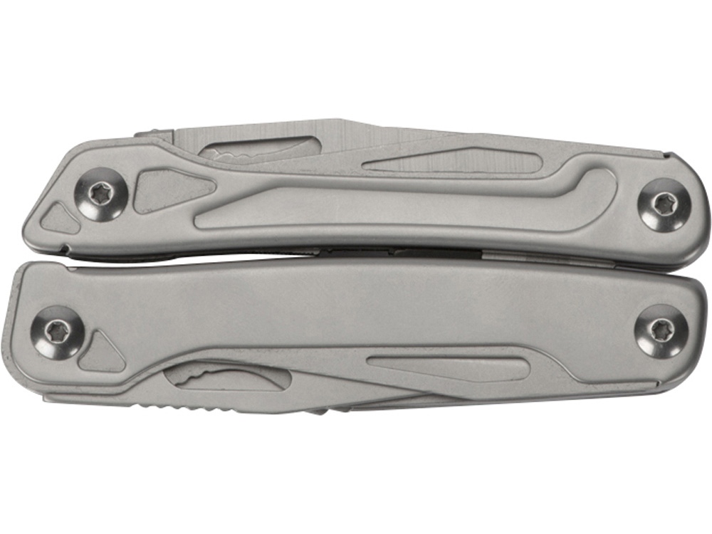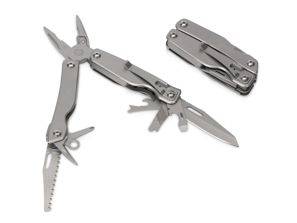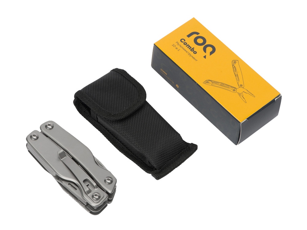Мультитул-пассатижи Combo бренда roq выполнен из нержавеющей стали. Матовое покрытие позволяет сделать брендирование более заметным. Чтобы не потерять инструмент, его можно прикрепить клипом за ремень или подвесить за складное кольцо. Поставляется в индивидуальной коробке вместе с чехлом. • матовая текстура — фон для яркого нанесения • чехол в комплекте • пассатижи и другие важные инструменты помогут и в повседневной жизни, и в походе Функции: 1. Пассатижи 2. Нож 3. Консервный нож 4. Напильники по металлу и дереву\пилка для ногтей 5. Плоская отвертка 6. Открывашка для бутылок 7. Нож для писем 8. Складное кольцо для крепления 9. Крестовая отвертка 10. Пила