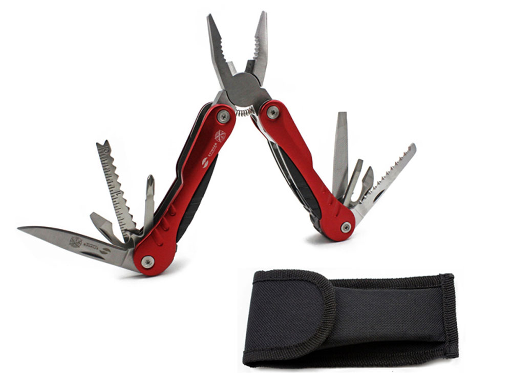 Мультитул Stinger, 103x45 мм, 9 функций, сталь, серебристо-красный, в комплекте нейлоновый чехол купить оптом и в розницу с нанесением логотипа в Санкт-Петербурге