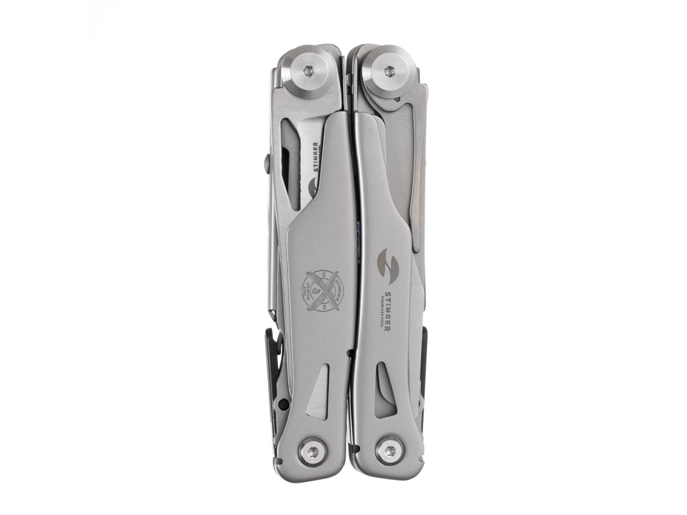 Мультитул Stinger, 106 мм, 15 функций, сталь, серебристый, в комплекте нейлоновый чехол купить оптом и в розницу с нанесением логотипа в Санкт-Петербурге
