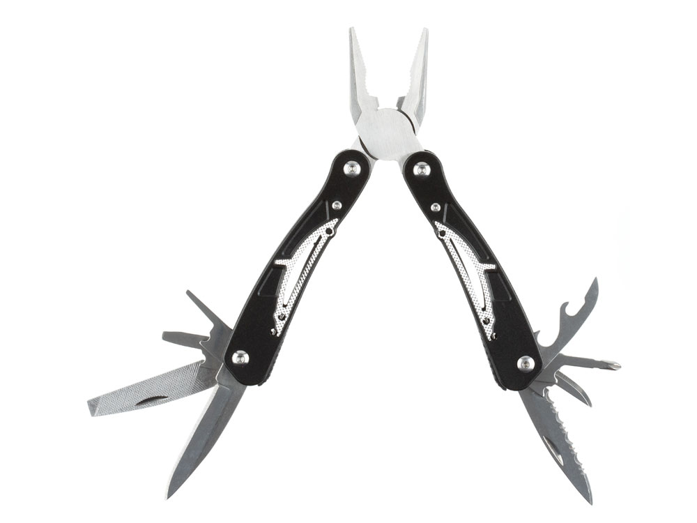 МНОГОФУНКЦИОНАЛЬНЫЙ ИНСТРУМЕНТ STINGER С НАБОРОМ ИЗ 13 ФУНКЦИЙ: 1. Острогубцы 2. Пассатижи 3. Кусачки 4. Лезвие большое 5. Лезвие с серрейторной кромкой 6. Отвёртка крестовая 7. Отвёртка шлицевая большая 8. Отвёртка шлицевая средняя 9. Отвёртка шлицевая малая 10. Открывалка для бутылок 11. Консервный нож 12. Шило 13. Напильник ХАРАКТЕРИСТИКИ: Материал инструментов: нержавеющая сталь 2Cr13 Материал рукояти: алюминий Длина: 104 мм Ширина: 45 мм Вес: 235 г В комплекте: чехол из синтетического материала Упаковка: складная картонная коробка