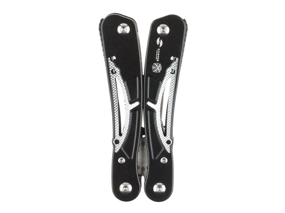 Мультитул Stinger, 105x45 мм, 13 функций, сталь/алюминий, серебристо-чёрный, в нейлоновом чехле