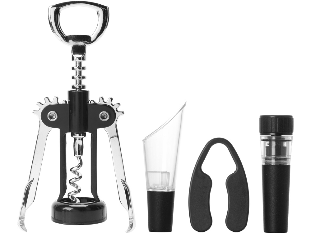 | Комплектность | механический штопор 17 х 5,3 х 3,7 см, винная пробка 2, 5 x 1,7 x 8,5 см, аэратор 3 x 1 x 9,5 см, нож для фольги 7 x 4,5 x 0,9 см |