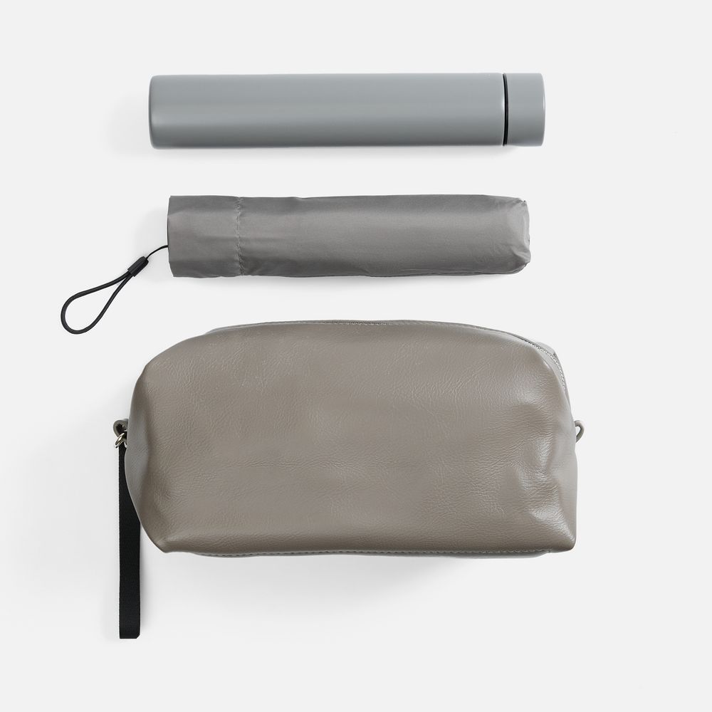 | Материал | несессер - искусственная кожа; зонт - полиэстер, 300Т, спицы - стеклопластик; ручка - прорезиненный пластик; бутылка - нержавеющая сталь, 304 внутри, 201 снаружи; матовое покрытие |