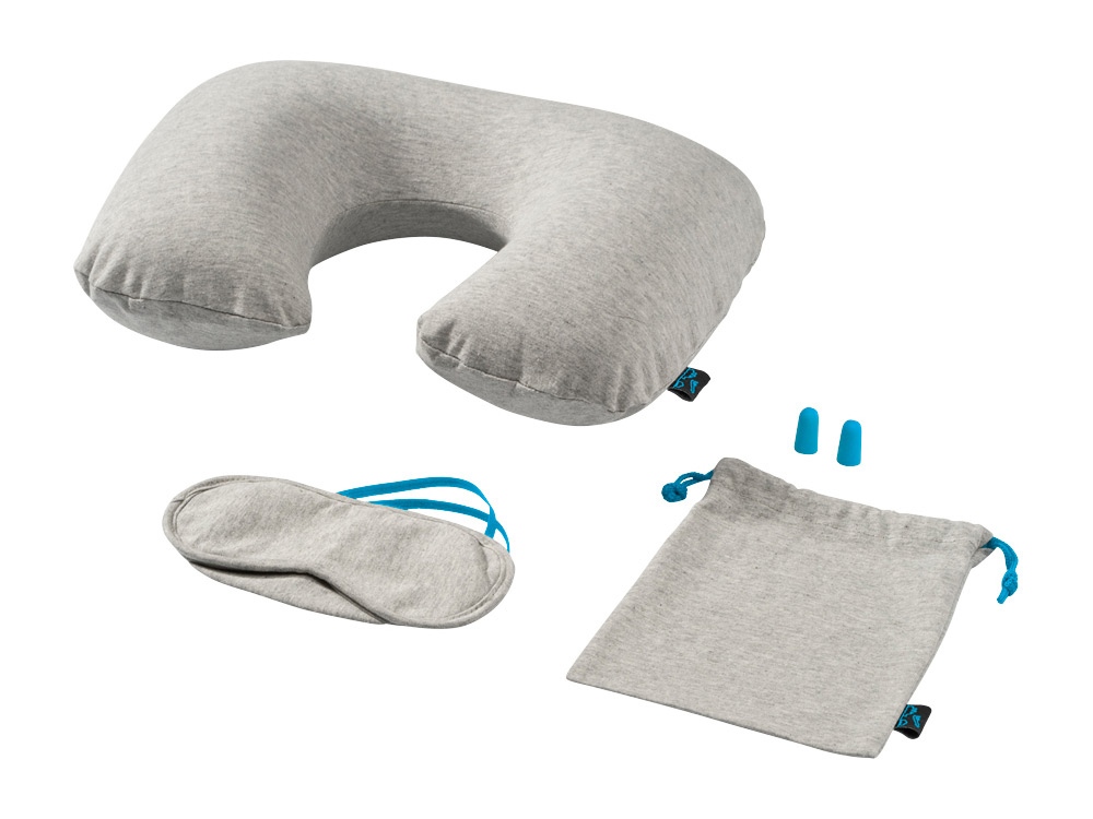 Дорожный набор Miami. Удобный дорожный набор включает надувную подушку с яркой молнией, маску для глаз с яркой резинкой и яркие беруши в мягком чехле с яркой кулиской. Джерси.