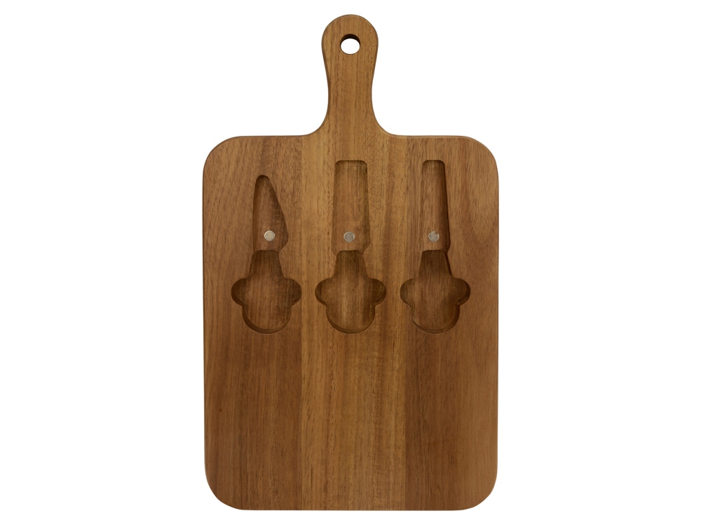 | Комплектность | разделочная доска 21,5 х 37,3 х 2 см, нож листовидный 11,2 см, нож-лопатка для мягкого сыра 12,2 см, вилка 12,3 см |