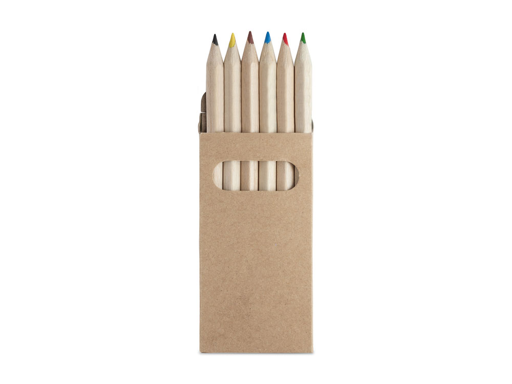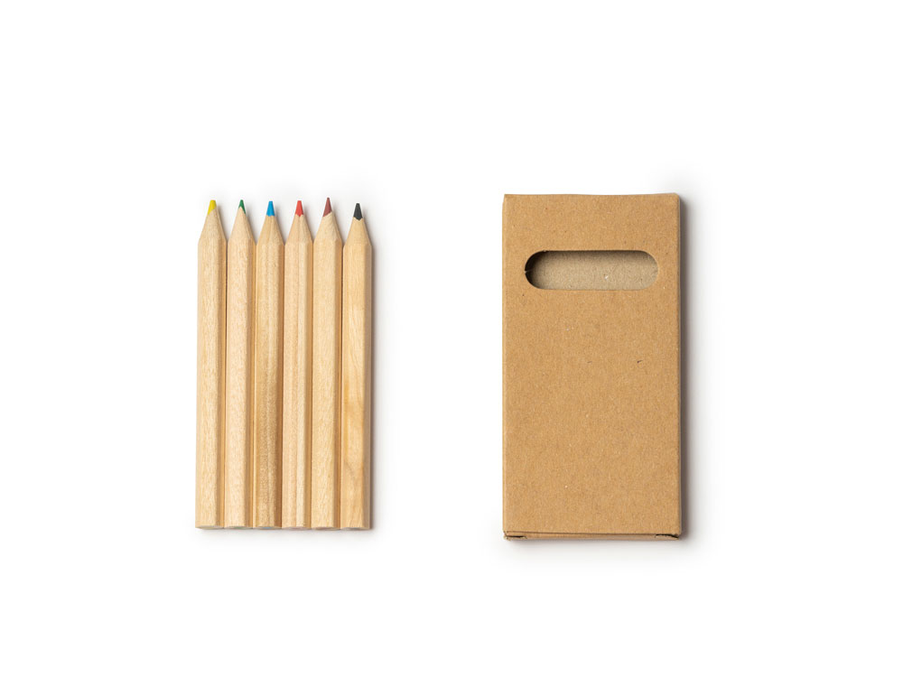 Набор из 6 деревянных карандашей в коробке из переработанного картона.