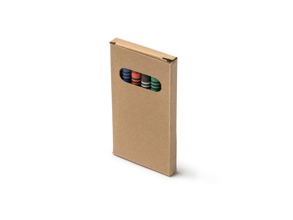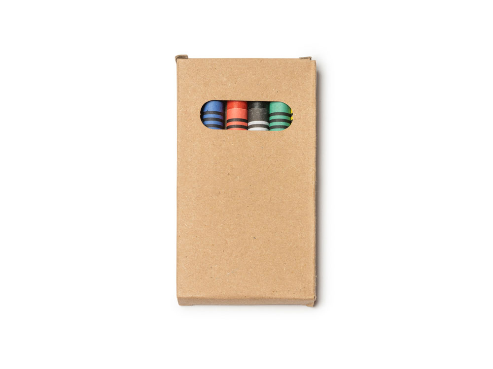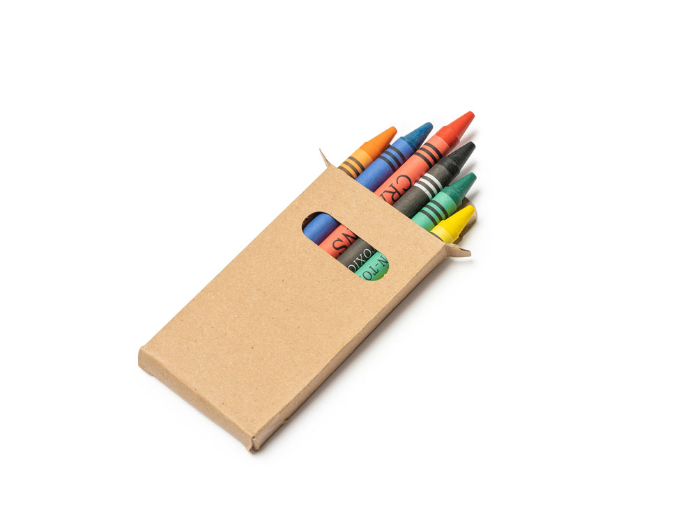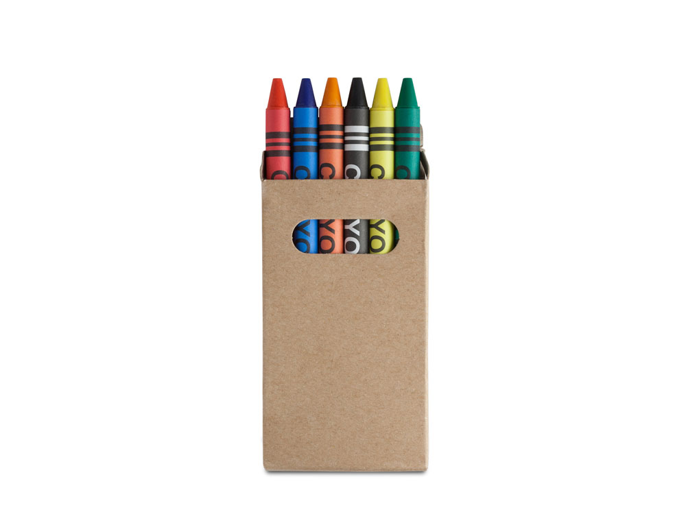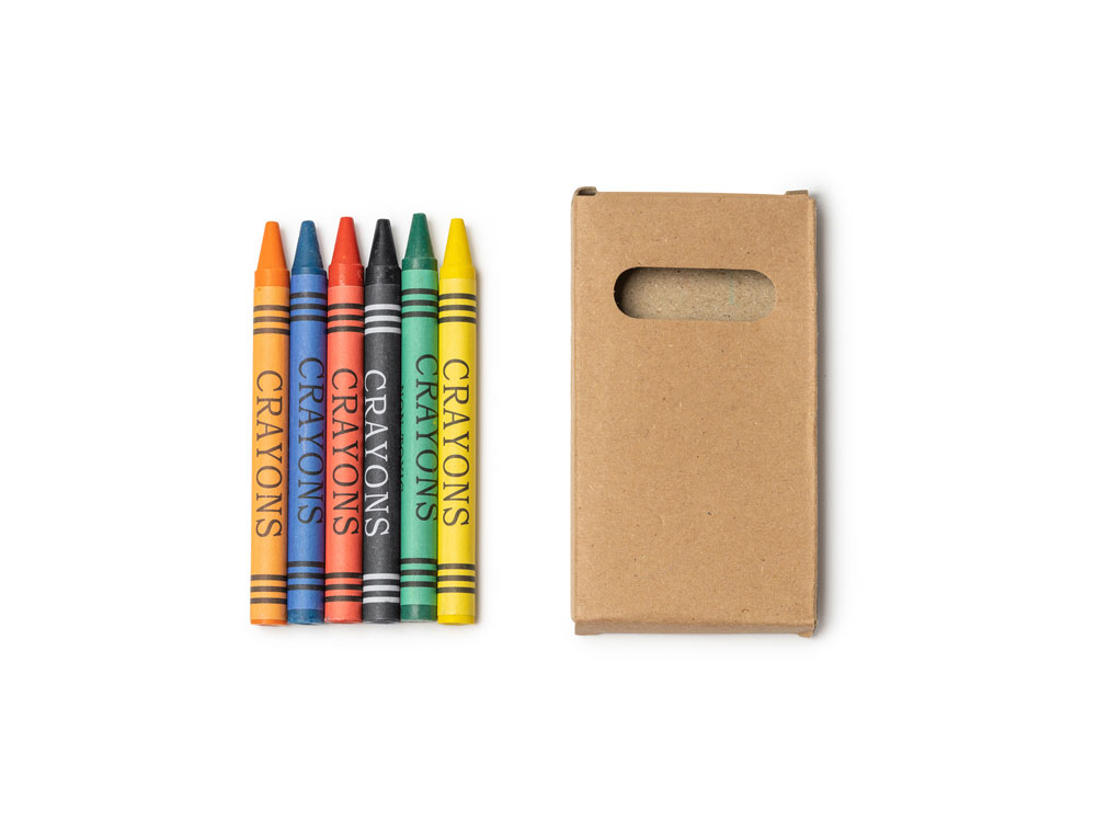 Набор из 6 восковых карандашей в коробке из переработанного картона.