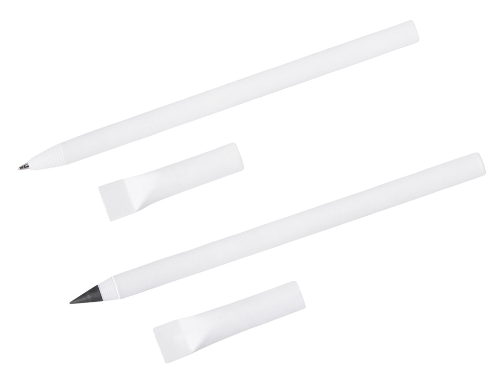 Набор из ручки и вечного карандаша из переработанной бумаги Recycled Duo, белый купить оптом и в розницу с нанесением логотипа в Санкт-Петербурге
