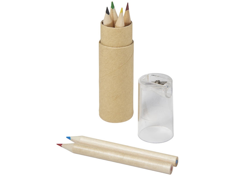 Набор содержит 6 цветных карандашей и футляр с крышкой-точилкой. Отличный вариант для создания оригинального промосувенира. Крышка позволит аккуратно собрать стружку в процессе подтачивания карандашей.