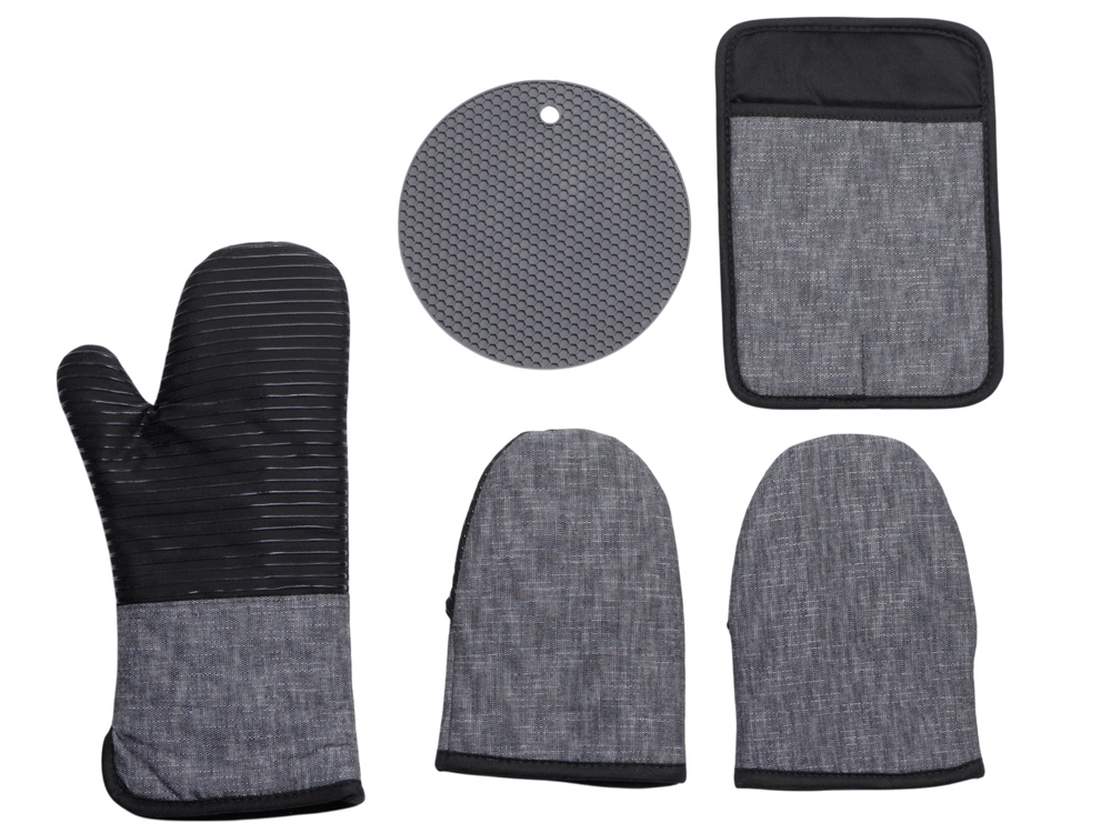 | Комплектность | прихватка рукавица, прихватка мини - 2шт, прихватка держатель для блюд, силиконовая подставка круглая |