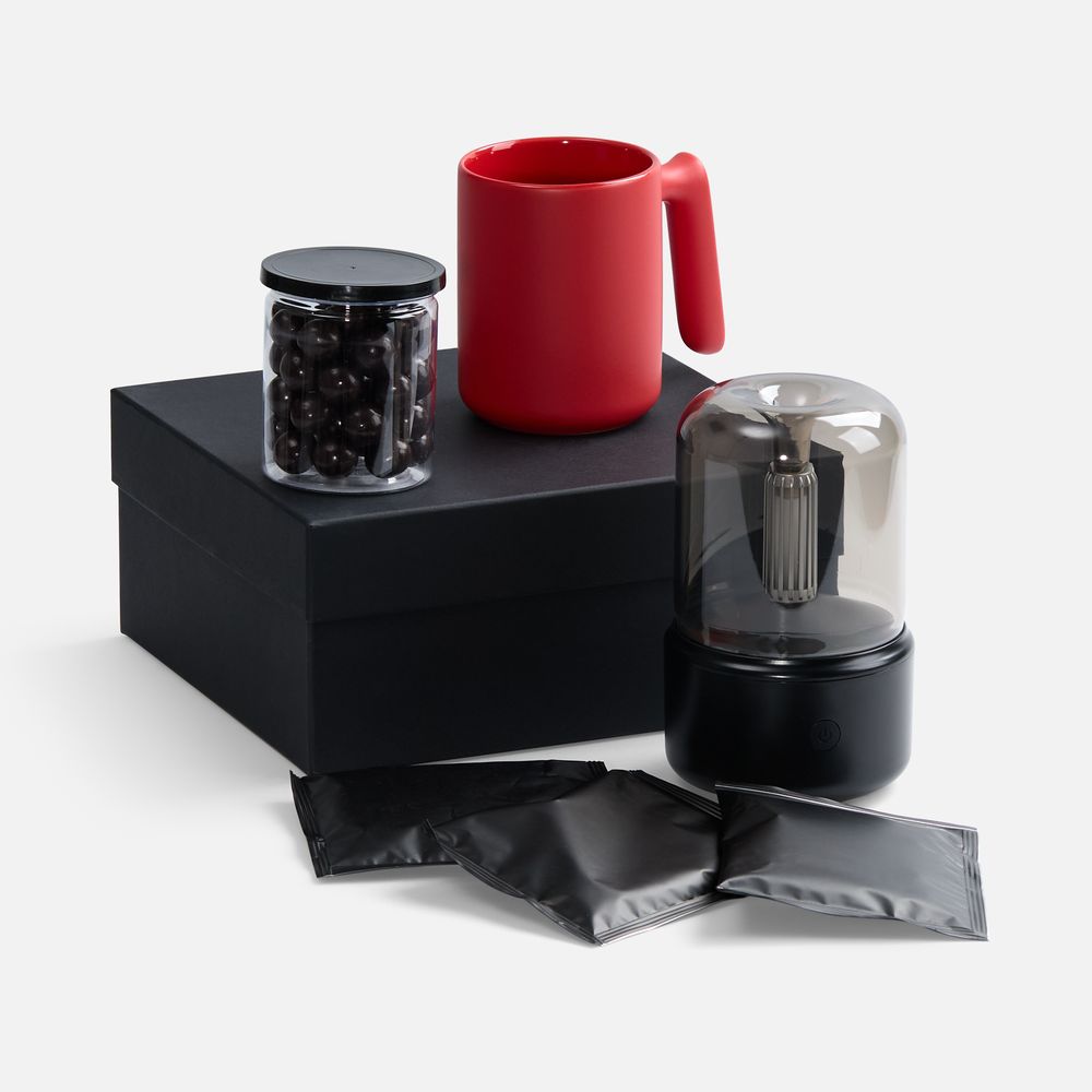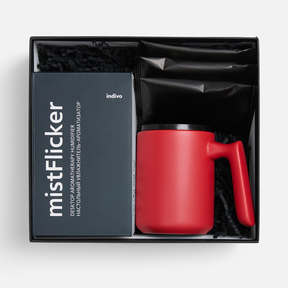 Набор «Микроклимат» создаст идеальную атмосферу — для бодрости или расслабления! Увлажнитель смягчает воздух, поможет снять усталость и мыслить ясно. В удобной керамической кружке Visari любимый напиток сохранит тепло, дрип-пакеты позволят легко приготовить вкусный кофе без лишних приборов, а фундук в шоколаде станет изящным завершением вашего ритуала наслаждения.