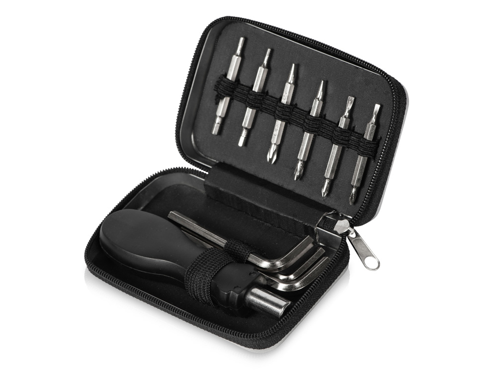 Этот компактный набор содержит 15 инструментов: 3 шестигранных ключа, 6 двухсторонних насадок с битами и ручки к ним. Весь набор компактно упакован в футляр с фиксирующими резинками, которые удерживают инструменты на створках. • 3 шестигранных ключа, 6 двухсторонних насадок с битами и ручки к ним • компактный футляр с удобной организацией пространства внутри • металлические компоненты выполнены из нержавеющей стали