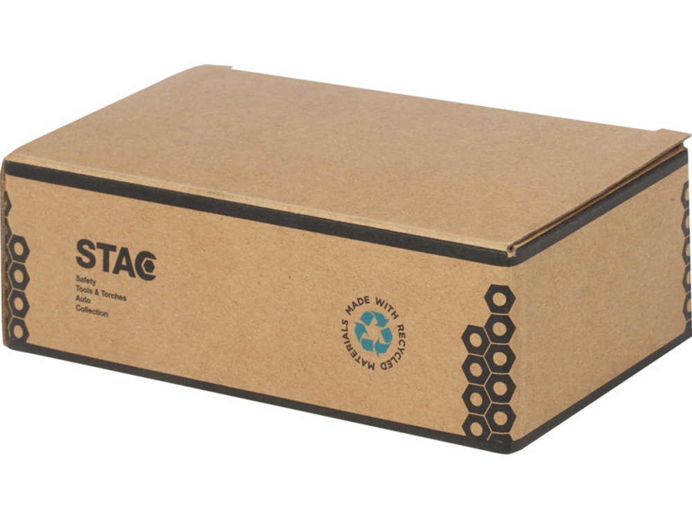 Компактный набор отверток 8 в 1 с фонариком, на 20 % изготовленный из переработанной пластмассы, сертифицированной RCS. Стандарт утилизации вторичного сырья (RCS) проверяет переработанное содержимое продукта на протяжении всей цепочки поставок. Этот практичный инструмент оснащен 2 светодиодными лампами, 3 головками Phillips и 3 плоскими головками. В комплекте три батарейки LR44. Упаковано в подарочную коробку STAC из экологически чистых источников. Переработанный ABS пластик.