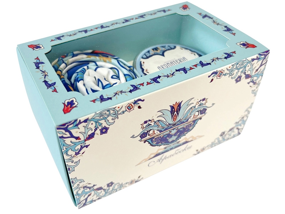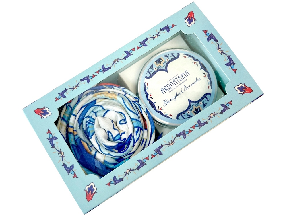 | Размер товара (см) | 15 х 8,5 х 8,5 см, платок 90 х 90 см, свеча d6,5 х 5 |