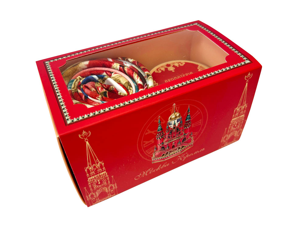 Город Москва – символ триумфа и победоносных свершений. Платок Кремль – Москва в шелке воплощает шедевр ювелирного искусства Карла Фаберже из серии подарков для русской императорской семьи. В центре полотна расположен Успенский собор в обрамлении башен Московского Кремля. Утонченный рисунок, яркое цветовое решение и глубокий символизм дизайна платка созданы для эффектного акцента праздничного образа. Свеча Бархатный пион наполнит пространство насыщенным ароматом цветов пиона, розы, жасмина и сочного красного яблока. Дуэт создаст торжественную атмосферу праздника, где все мечты и желания непременно исполнятся! Платок: 70% искусственный шёлк, 30% вискоза, 90х 90 см Свеча: натуральный соевый воск, парфюмерная композиция (объем 100мл/ 20 часов горения)