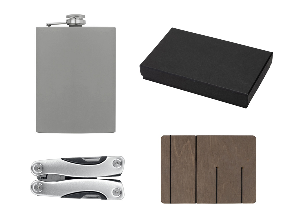 Набор с мультитулом и фляжкой Путешественник 2.0., серый