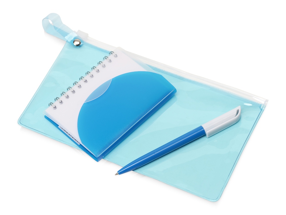 | Цвет товара | блокнот- прозрачный/голубой, ручка- голубой/белый, пенал- голубой прозрачный |
