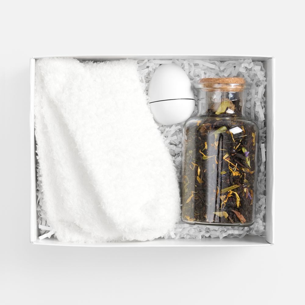 Это базовые элементы заботы — мягкие носки и бальзам для губ — и уникальный сорт чая, задающий особое настроение. Идеальное решение для всех, кто ценит спокойные моменты уединения и эстетику повседневных ритуалов.