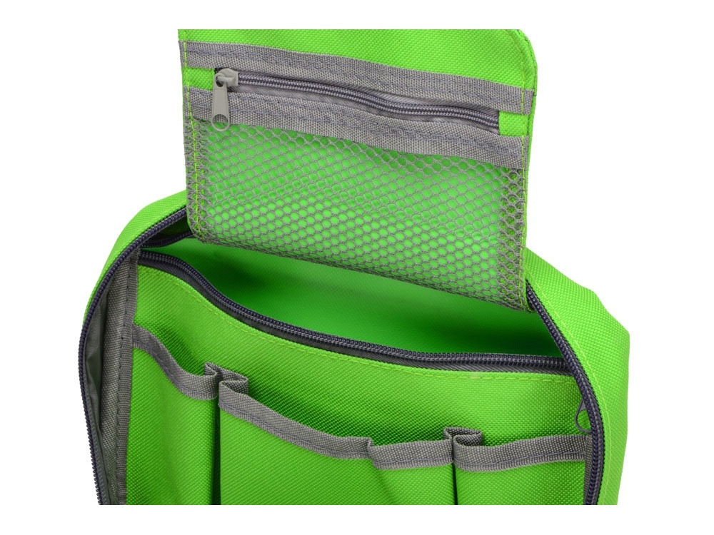 Несессер для путешествий – неотъемлемый атрибут комфортных поездок, служащий для компактного хранения различных мелочей. Аксессуар также пригодится для походов в спортзал и просто поддержания порядка дома. Это превосходный подарок любителю путешествий, а также отличный вариант промо-презента для рекламных кампаний. Большая поверхность позволяет нанести логотип или слоган фирмы. • Вместительное пространство с двумя большими отделениями и несколькими карманами дает возможность эргономично распределить весь дорожный арсенал косметических и туалетных принадлежностей. • Крючок позволяет подвесить аксессуар, например, в уборной поезда или гостиничном номере, в случае отсутствия полки. • Оптимальные размеры, не превышающие формат А4, позволяют легко разместить несессер в любом чемодане или дорожной сумке.