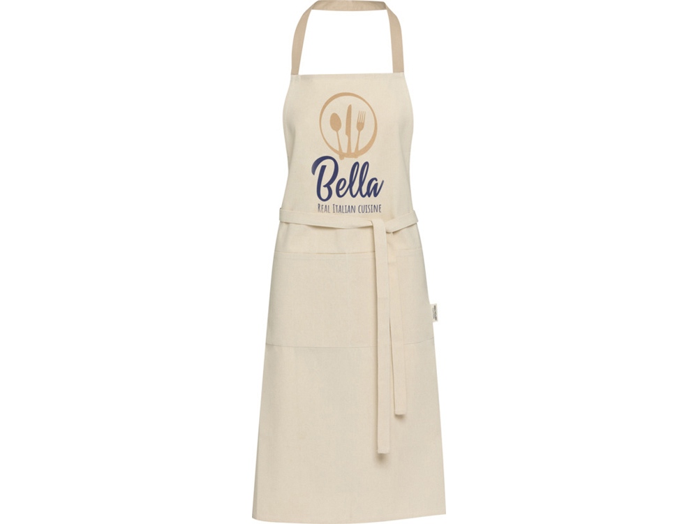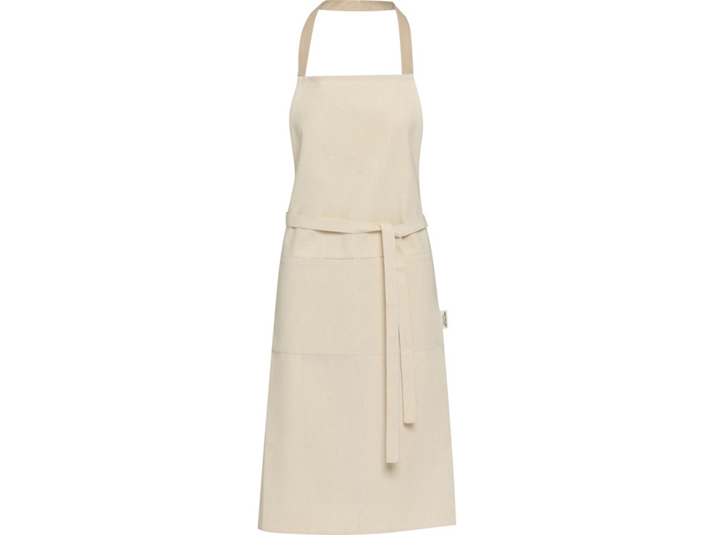 Фартук Nia изготовлен из 100% сертифицированного GRS переработанного хлопка плотностью 200 г/м². Этот фартук из натурального хлопка с контрастной петлей на шее защитит вашу одежду во время приготовления пищи. Фартук Nia с двумя соседними карманами общим размером 45 x 20 см и завязками длиной 1 метр обеспечивает обеспечивает практичность и стиль на вашей кухни. GRS certified recycled cotton, 210 g/m2.