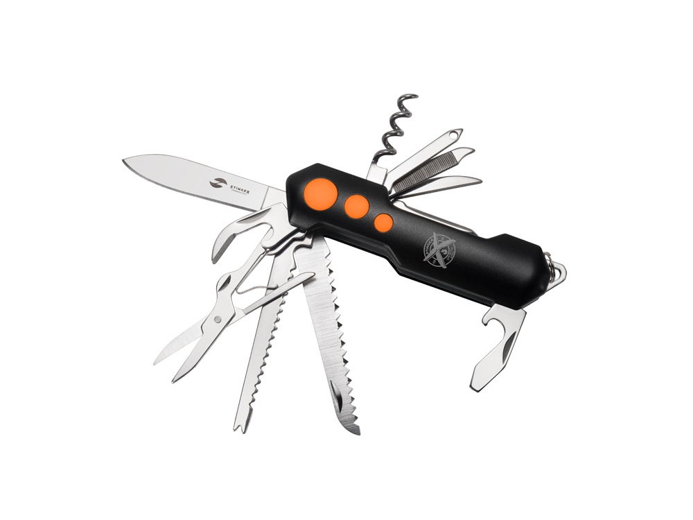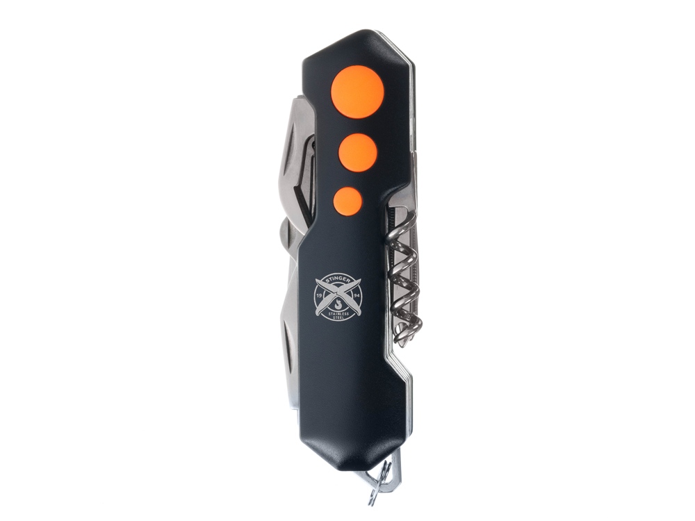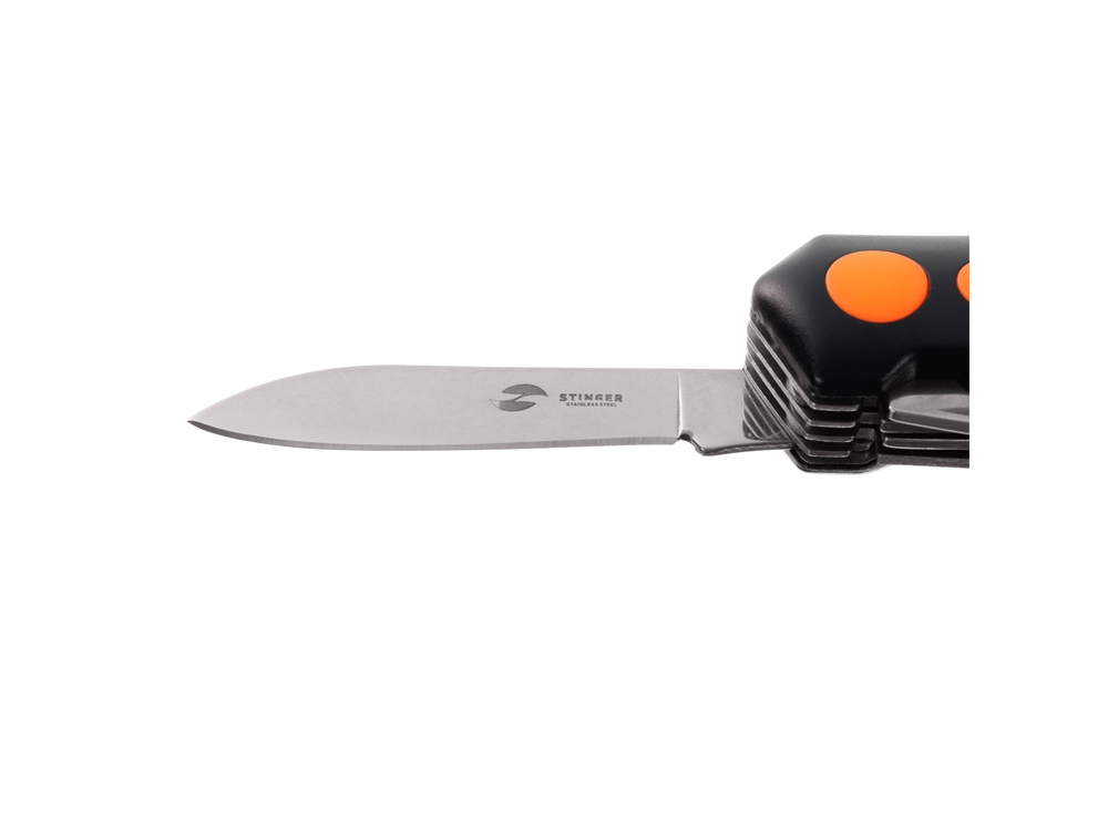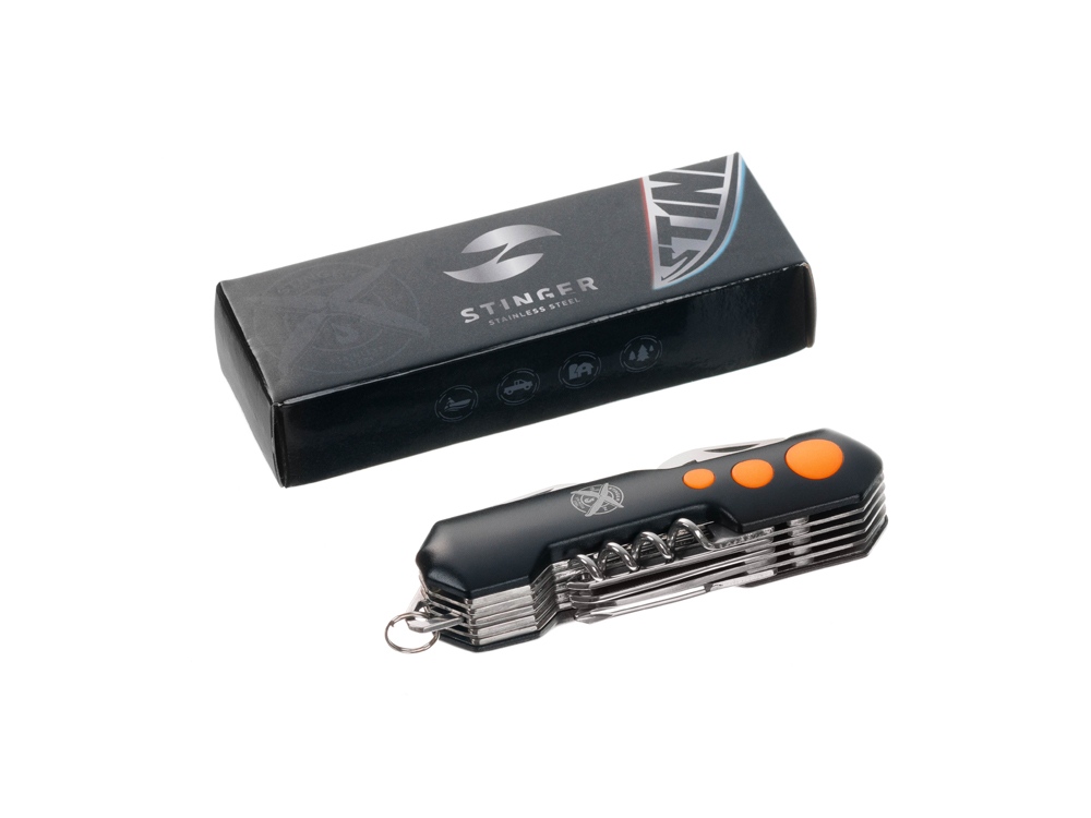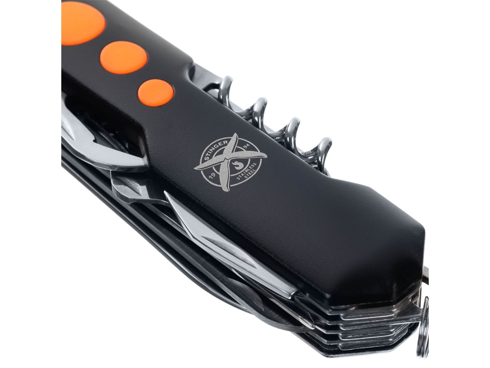 Нож перочинный Stinger, 96 мм, 15 функций, материал рукояти: алюминий, PP (черный/оранжевый) купить оптом и в розницу с нанесением логотипа в Санкт-Петербурге