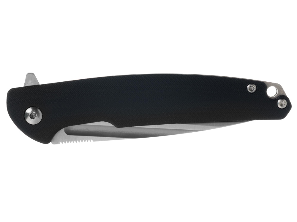НОЖ СКЛАДНОЙ STINGER Повседневный складной нож из высококачественных материалов, идеально подойдет для решения большинства задач. Рукоять ножа изготовлена из стали с накладками из стеклотекстолита G10 - композитного материала на основе стеклоткани и эпоксидной смолы. G10 является прочным и ударостойким материалом, отлично переносит влагу, отличается повышенной стойкостью к огню. Рукоять ножа собрана на втулках - бонках, поэтому при необходимости его можно легко промыть. На рукояти расположено отверстие для темляка и клипса для удобного размещения ножа в кармане. Нож открывается при помощи флиппера с ассистом (механизм ускоренного открывания), который может дополнительно выполнять роль гарды, предотвращая соскальзывание руки на лезвие клинка. На верхней части лезвия расположен подпальцевый упор с насечкой для более комфортной работы. Клинок ножа произведен из высокоуглеродистой стали D2, которая пользуется большой популярностью в ножевой индустрии из-за исключительных технических и эксплуатационных параметров. Высокое содержание хрома (11%) и углерода (1,5%) в составе повышают коррозионную стойкость и ударную вязкость сплава, делают его достаточно твердым. D2 имеет твердость по шкале Роквелла в диапазоне 59-61 HRC, что делает ее одной из самых твердых сталей для ножей и позволяет лезвию держать остроту длительный период времени даже при интенсивном использовании. D2 отличается высокой прочностью, устойчивостью к износу и разрушению, что позволяет клинку выдерживать удары и нагрузки. Благодаря высокой твердости и прочности клинок из стали D2 имеет долгий срок службы, обеспечивает качественный и точный срез и не требует частой заточки. Характеристики: Материал клинка: высокоуглеродистая сталь D2 Твердость по шкале Роквелла: 59-61 HRC Материал рукояти: нержавеющая сталь/стеклотекстолит G10 Метод открывания клинка: флиппер с ассистом (механизм ускоренного открывания) Фиксатор клинка: Liner Lock Длина ножа: 187 мм Длина клинка: 81 мм Толщина клинка: 4 мм Вес: 100 г Цвет рукояти: черный Особенности: рукоять с клипом и отверстием под темляк В комплекте: нейлоновый чехол