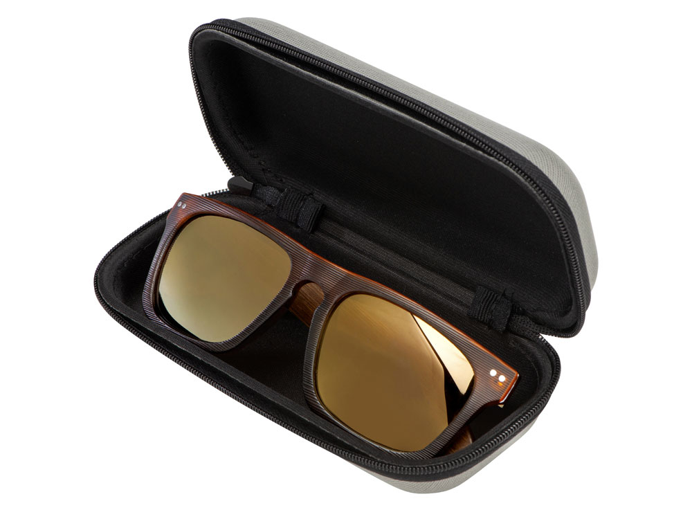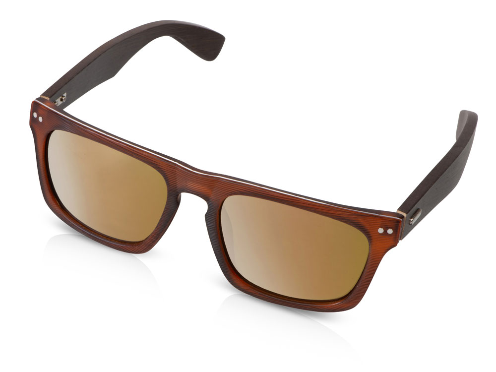 Корпус солнцезащитных очков полностью изготовлен с применением экологически чистого материала-бамбука, окрашенного в темно-коричневый цвет. Зеркальные линзы в тон оправе дополняют ее и придают очкам более стильный вид. Прочная конструкция креплений. 100% Защита от вредного УФ-излучения (UV 400). Поставляются в качественном футляре из неопрена.