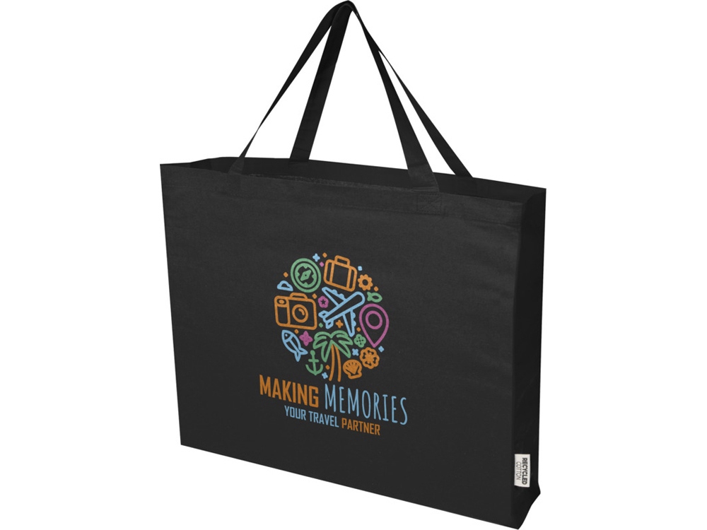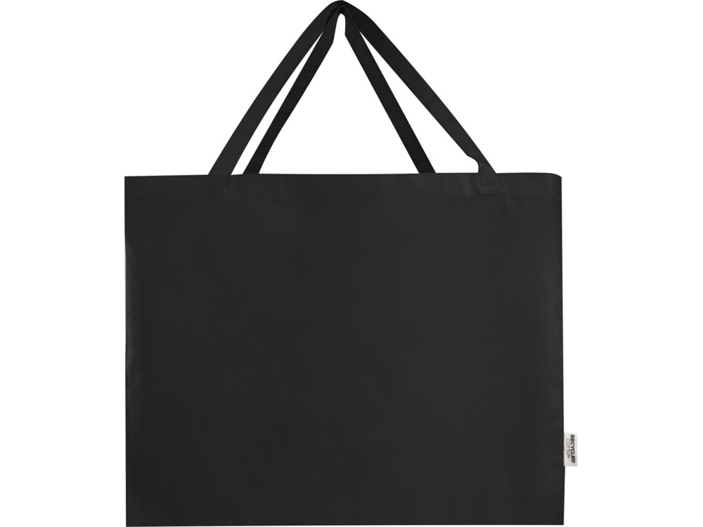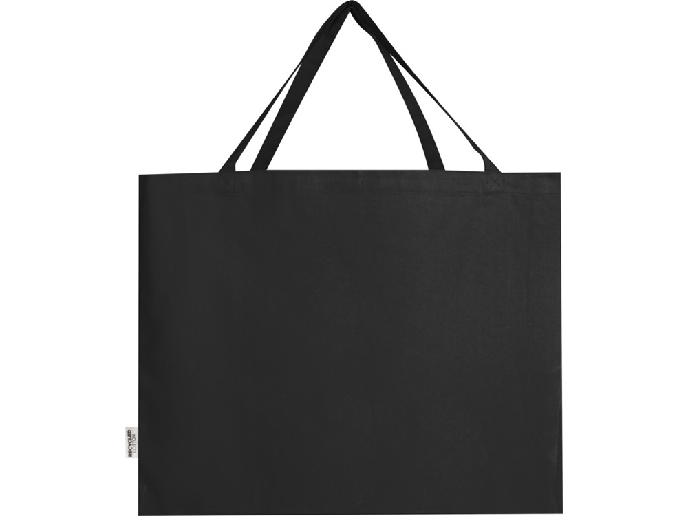 Odessa большая эко-сумка из переработанного хлопка, сертифицированного согласно GRS, плотностью 220 г/м² - сплошной черный купить оптом и в розницу с нанесением логотипа в Санкт-Петербурге