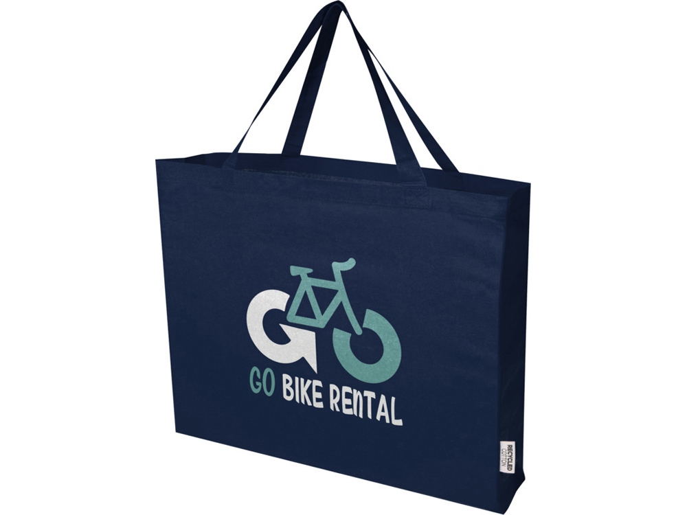Odessa большая эко-сумка из переработанного хлопка, сертифицированного согласно GRS, плотностью 220 г/м² - Темно - синий купить оптом и в розницу с нанесением логотипа в Санкт-Петербурге